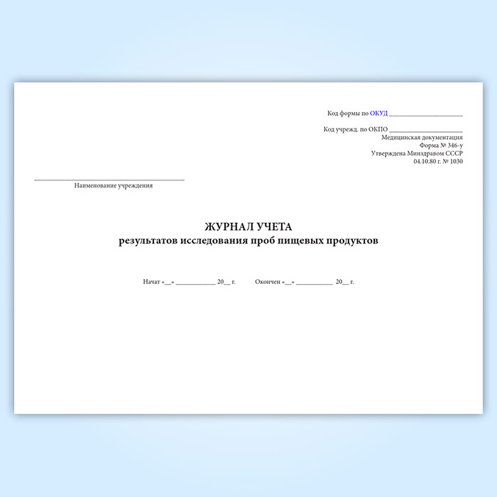 Журнал учета результатов исследования проб пищевых продуктов (форма 346/у) в Кызыле купить