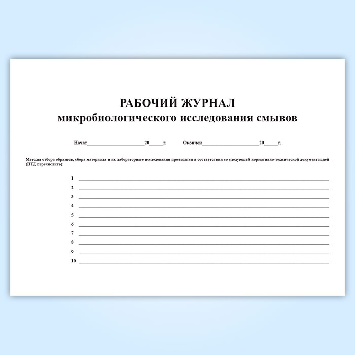 Рабочий журнал микробиологического исследования смывов (форма № 381у) в Кызыле купить