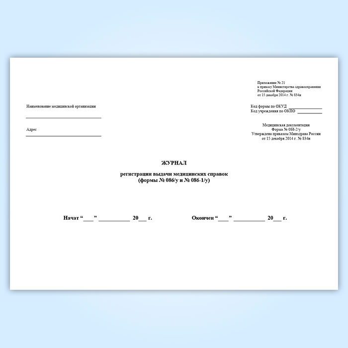 Журнал регистрации выдачи медицинских справок (форма № 086-2/у) в Кызыле купить