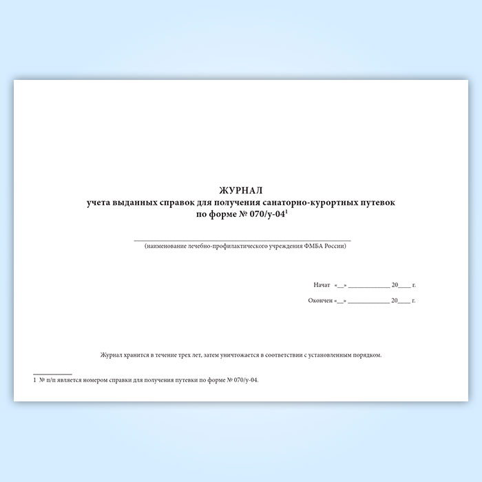 Журнал учета выданных справок для получения санаторно-курортных путевок (форма № 070/у-04) в Кызыле купить