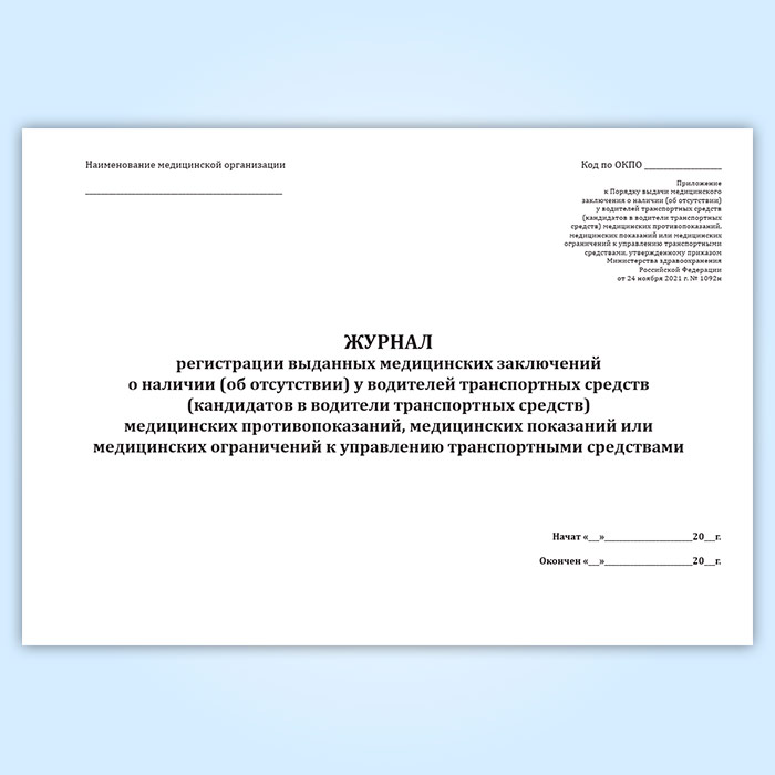 Журнал регистрации выданных медицинских заключений о наличии (об отсутствии) у водителей транспортных средств (кандидатов в водители транспортных средств) медицинских противопоказаний, медицинских показаний или медицинских ограничений к управлению транспортными средствами в Кызыле купить