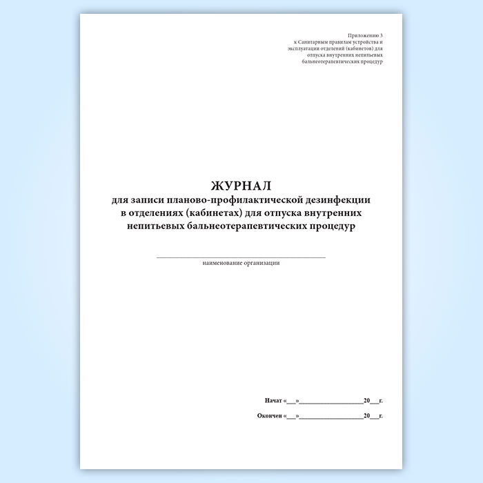 Журнал для записи планово-профилактической дезинфекции в отделениях (кабинетах) для отпуска внутренних непитьевых бальнеотерапевтических процедур в Кызыле купить
