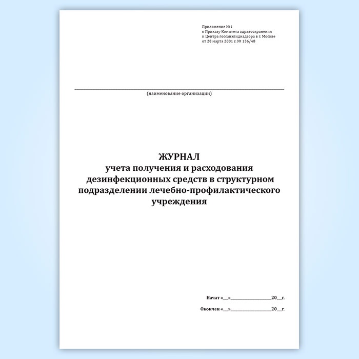 Журнал учета получения и расходования дезинфекционных средств в структурном подразделении лечебно-профилактического учреждения в Кызыле купить