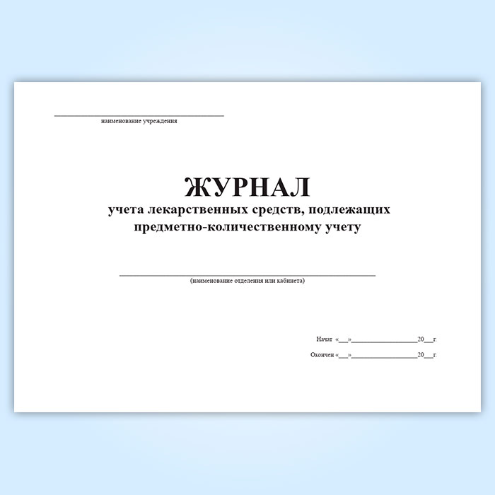 Журнал учета лекарственных средств, подлежащих предметно-количественному учету в Кызыле купить
