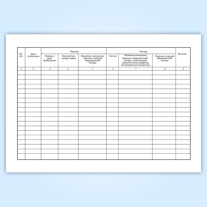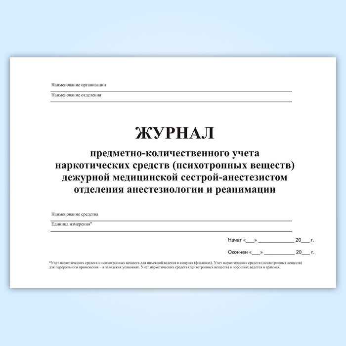 Журнал предметно-количественного учета наркотических средств (психотропных веществ) дежурной медицинской сестрой-анастезистом отделения анастезиологии и реанимации в Кызыле купить