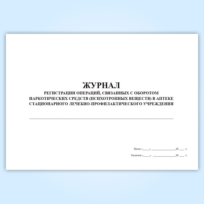 Журнал регистрации операций, связанных с оборотом наркотических средств и психотропных веществ в аптеке медицинской организации в Кызыле купить
