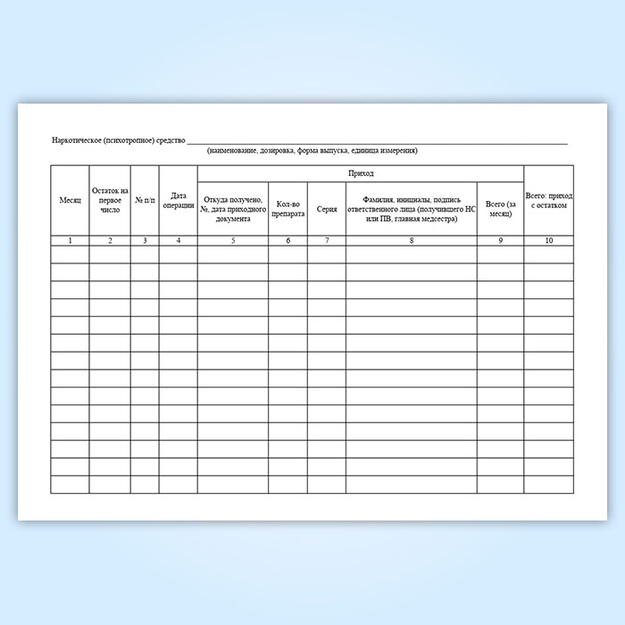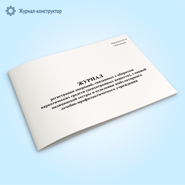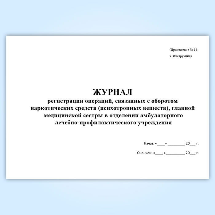 Журнал регистрации операций, связанных с оборотом наркотических средств (психотропных веществ), главной медицинской сестры в отделении амбулаторного лечебно-профилактического учреждения в Кызыле купить