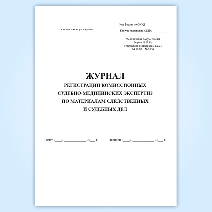 Журнал регистрации комиссионных судебно-медицинских экспертиз по материалам следственных и судебных дел (форма 183/у) в Кызыле купить