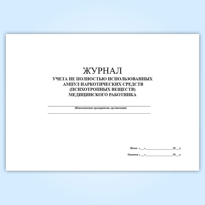 Журнал учета не полностью использованных ампул наркотических средств (психотропных веществ) медицинского работника в Кызыле купить