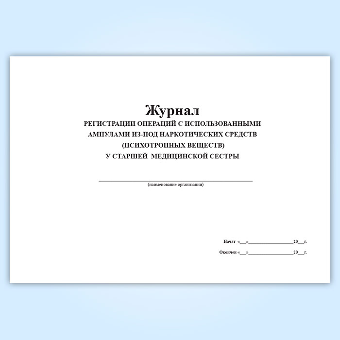 Журнал регистрации операций с использованными ампулами из-под наркотических средств (психотропных веществ) у старшей медицинской сестры в Кызыле купить