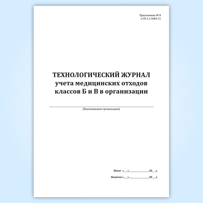 Технологический журнал учета медицинских отходов классов Б и В в организации в Кызыле купить