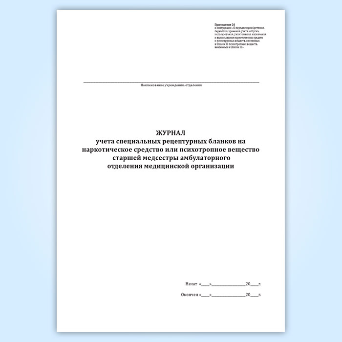 Журнал учета специальных рецептурных бланков на наркотическое средство или психотропное вещество старшей медсестры амбулаторного отделения медицинской организации в Кызыле купить