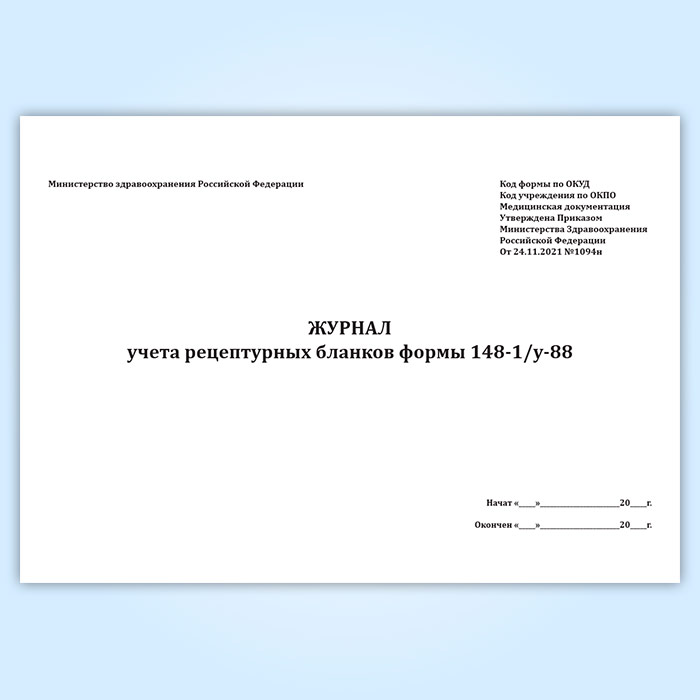 Журнал учета рецептурных бланков формы 148-1/у-88 (новый) (Приказ Минздрава России от 24.11.2021 N 1094н) в Кызыле купить