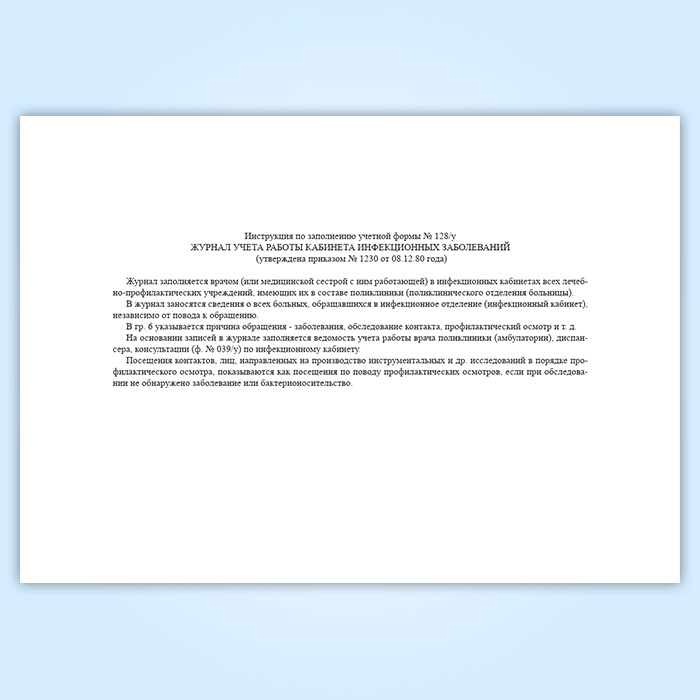 Журнал учета работы кабинета инфекционных заболеваний (форма 128/у) в Кызыле купить