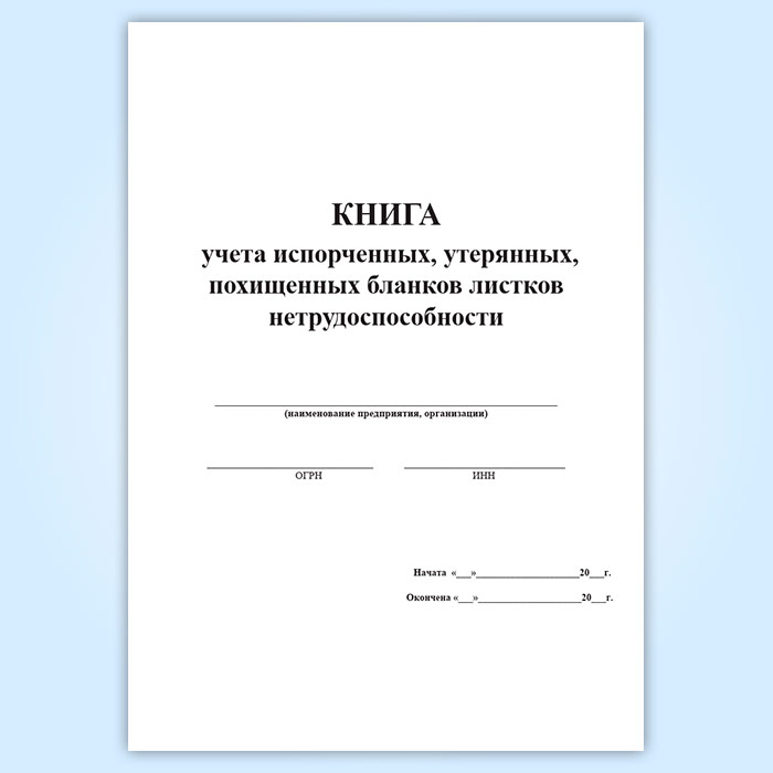 Книга учета испорченных, утерянных, похищенных бланков листков нетрудоспособности в Кызыле купить
