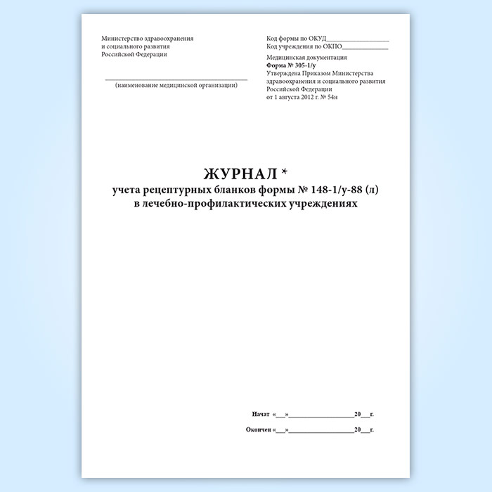 Журнал учета рецептурных бланков формы № 148-1/у-88 (л) в лечебно-профилактических учреждениях форма 305/у-1 в Кызыле купить