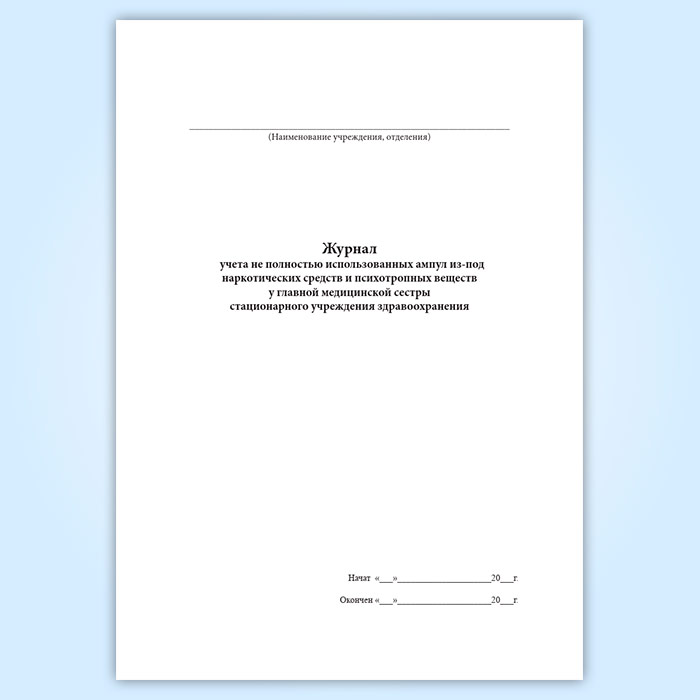 Журнал учета не полностью использованных ампул из-под наркотических средств и психотропных веществ у главной медицинской сестры стационарного учреждения здравоохранения в Кызыле купить