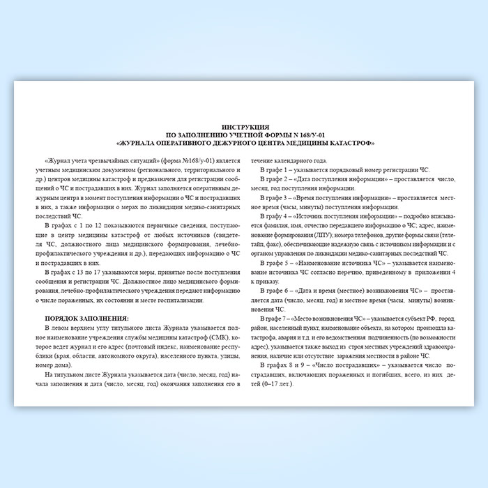 Журнал оперативного дежурного центра медицины катастроф (форма 168/у-01) в Кызыле купить