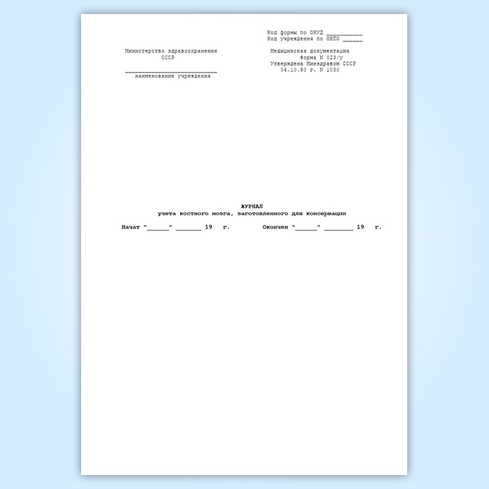 Журнал учета костного мозга, заготовленного для консервации (форма 023/у) в Кызыле купить