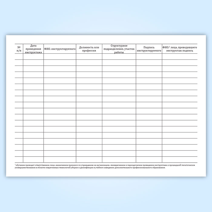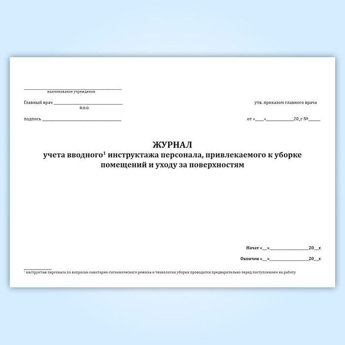 Журнал учета вводного инструктажа персонала, привлекаемого к уборке помещений и уходу за поверхностями в Кызыле купить
