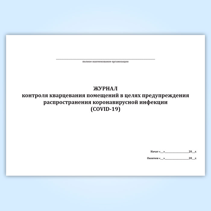 Журнал контроля кварцевания помещений в целях предупреждения распространения коронавирусной инфекции (COVID-19) в Кызыле купить