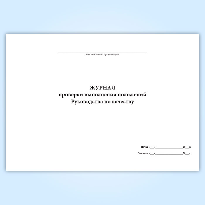 Журнал проверки выполнения положений Руководства по качеству в Кызыле купить