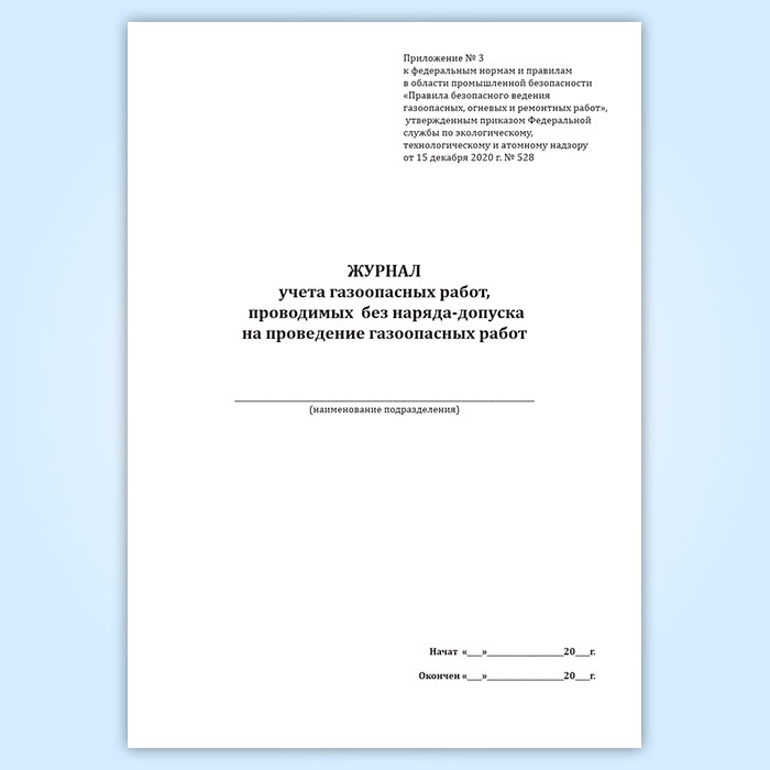 Журнал учета газоопасных работ, проводимых без наряда-допуска на проведение газоопасных работ в Кызыле купить