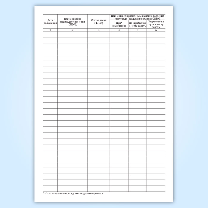 Журнал учета работающих звеньев газодымозащитной службе (ГДЗС) в Кызыле купить
