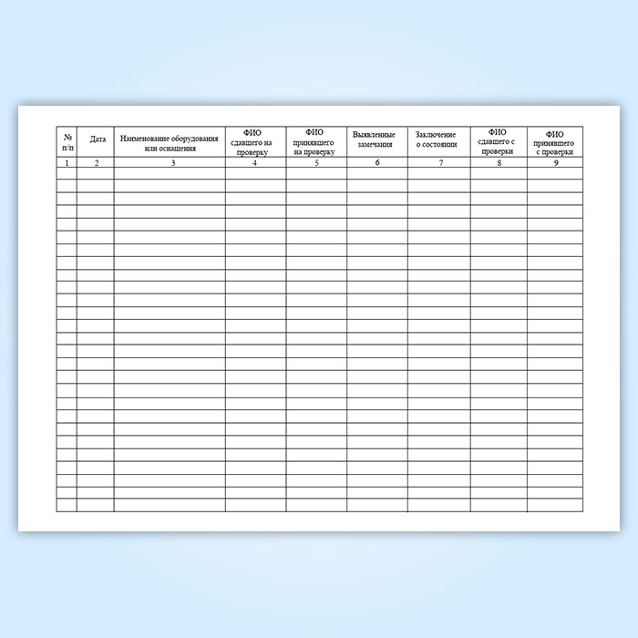 Журнал регистрации сдачи и выдачи оборудования и средств технического оснащения НАСФ на проверку в Кызыле купить