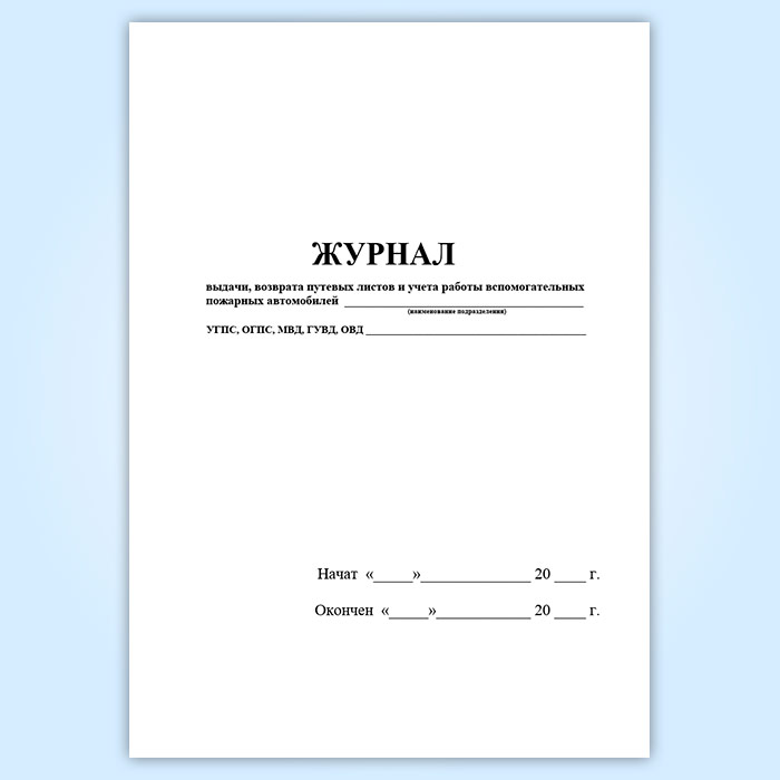Журнал выдачи, возврата путевых листов и учета работы вспомогательных пожарных автомобилей в Кызыле купить