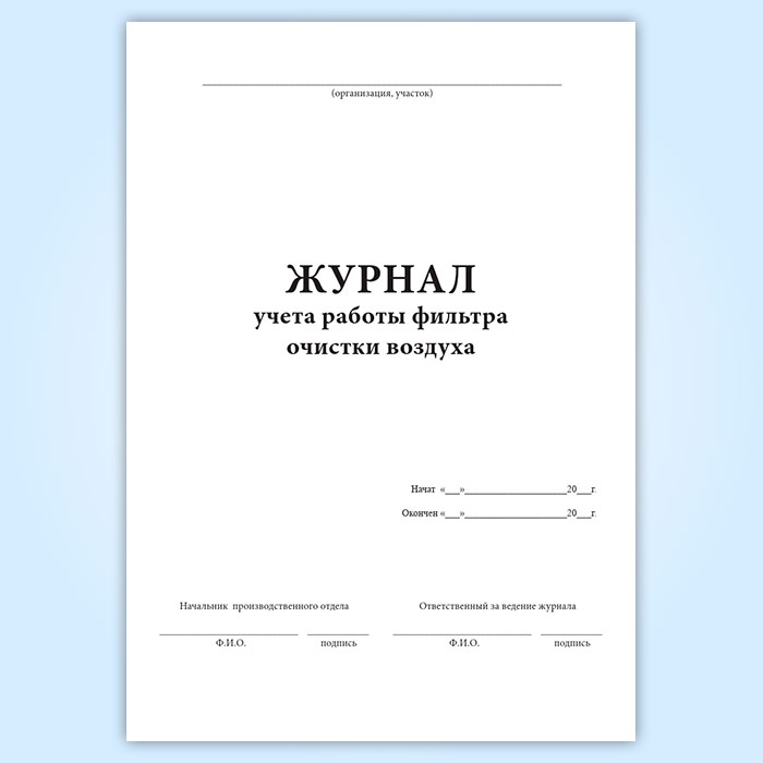 Журнал учета работы фильтра очистки воздуха в Кызыле купить