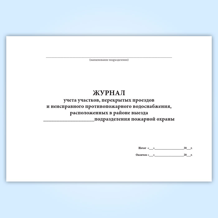 Журнал учета участков, перекрытых проездов и неисправного противопожарного водоснабжения, расположенных в районе выезда подразделения пожарной охраны в Кызыле купить