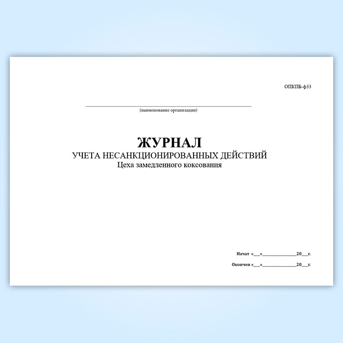 Журнал учета несанкционированных действий цеха замедленного коксования (ОПКПБ-ф33) в Кызыле купить