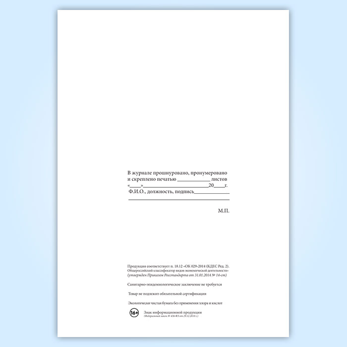 Вы получаете печатную продукцию прошнурованной и c местом для вашей печати в соответствии с действующими нормативными документами: