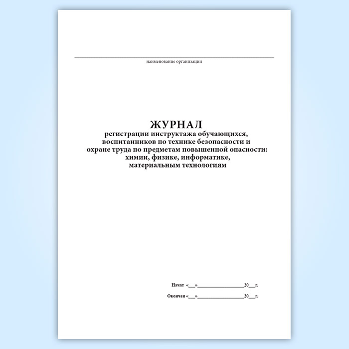 Журнал регистрации инструктажа обучающихся, воспитанников по технике безопасности и охране труда по предметам повышенной опасности: химии, физике, информатике, материальным технологиям в Кызыле купить