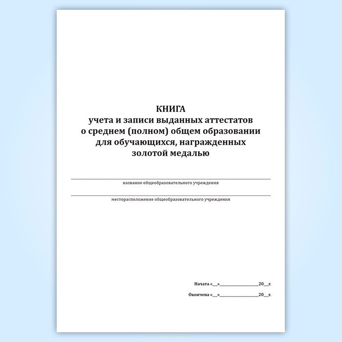 Книга учета и записи выданных аттестатов о среднем (полном) общем образовании для обучающихся, награжденных золотой медалью в Кызыле купить