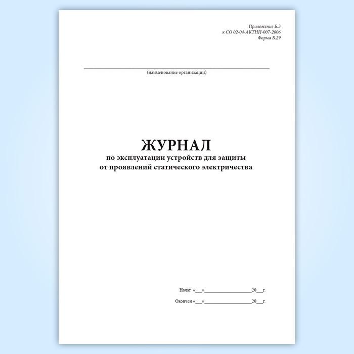 Журнал по эксплуатации устройств для защиты от проявлений статического электричества (форма Б.29) в Кызыле купить