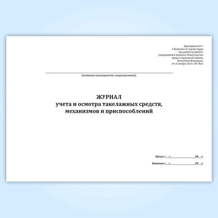 Журнал учета и осмотра такелажных средств, механизмов и приспособлений (Приказ Минтруда России от 16.11.2020 N 782н) в Кызыле купить
