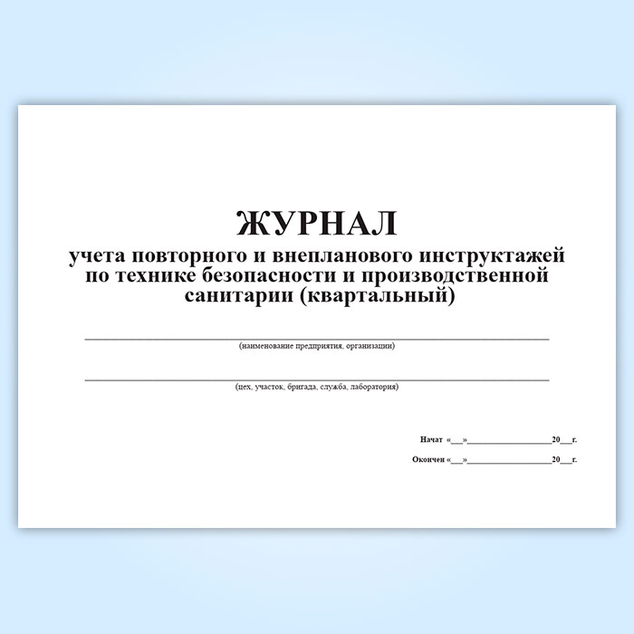 Журнал учета повторного и внепланового инструктажей по технике безопасности и производственной санитарии (квартальный) в Кызыле купить