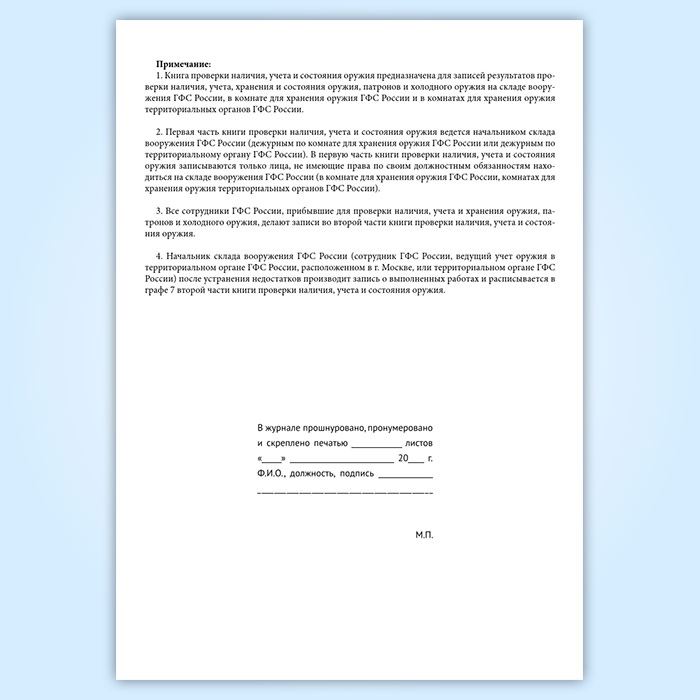 Книга проверки наличия, учета и состояния оружия (форма 20) в Кызыле купить