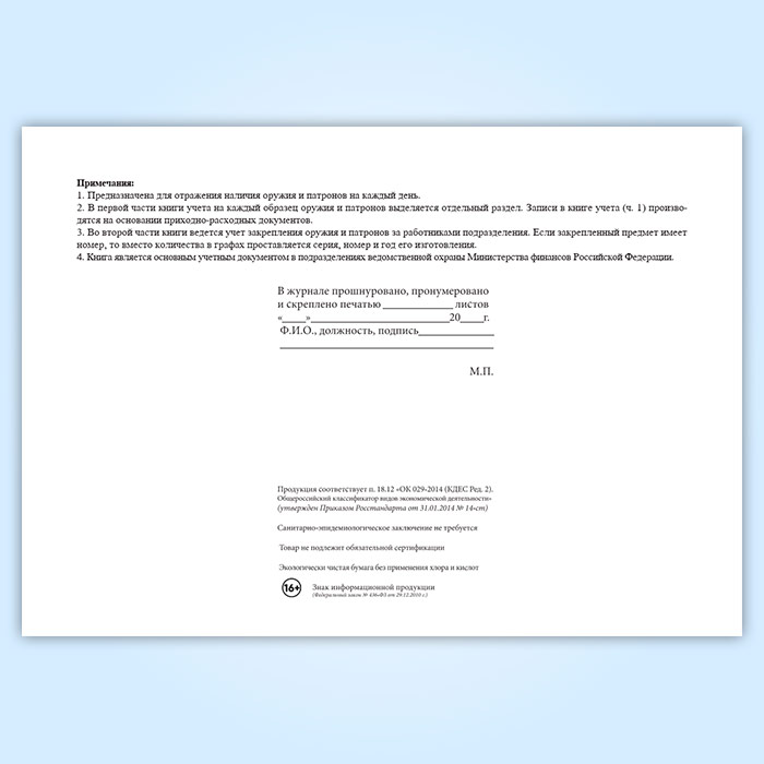 Книга учета и персонального закрепления оружия и патронов в Кызыле купить