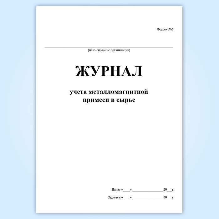 Журнал учета металломагнитной примеси в сырье (форма № 6) в Кызыле купить