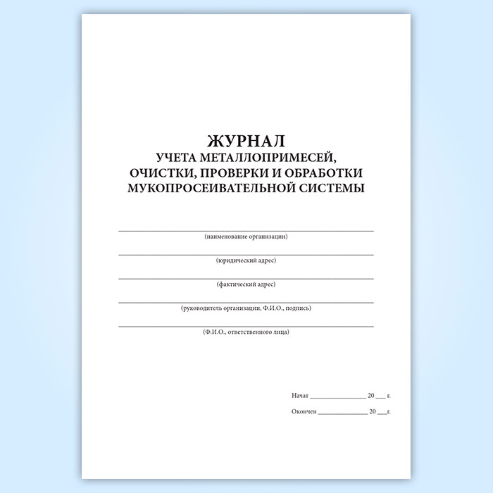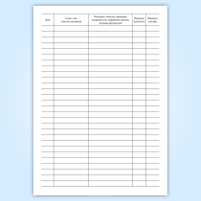 Журнал учета металлопримесей, очистки, проверки и обработки мукопросеивательной системы в Кызыле купить