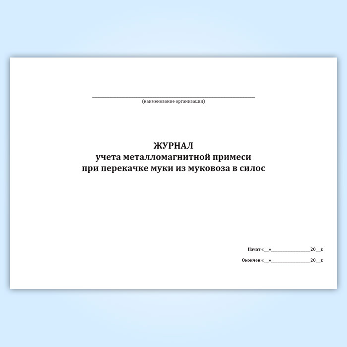 Журнал учета металломагнитной примеси при перекачке муки из муковоза в силос в Кызыле купить