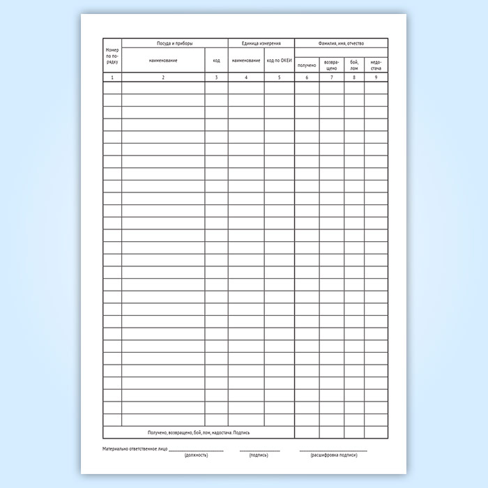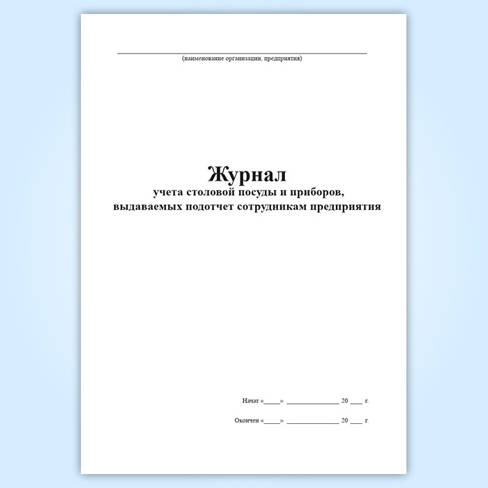 Журнал учета столовой посуды и приборов, выдаваемых подотчет сотрудникам предприятия (специализированная форма 16-ОПит) в Кызыле купить