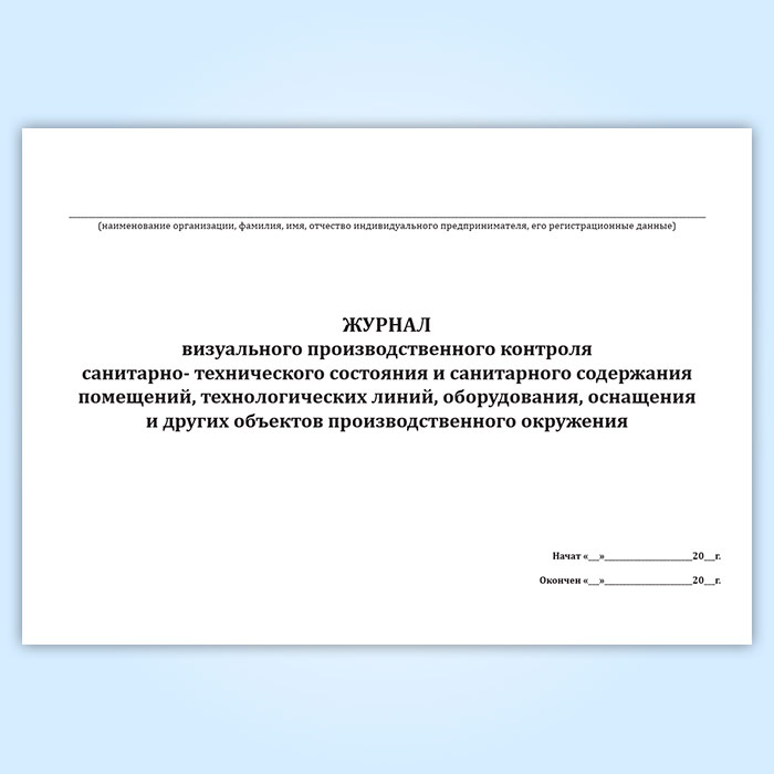 Журнал визуального производственного контроля санитарно-технического состояния и санитарного содержания помещений, технологических линий, оборудования, оснащения и других объектов производственного окружения в Кызыле купить