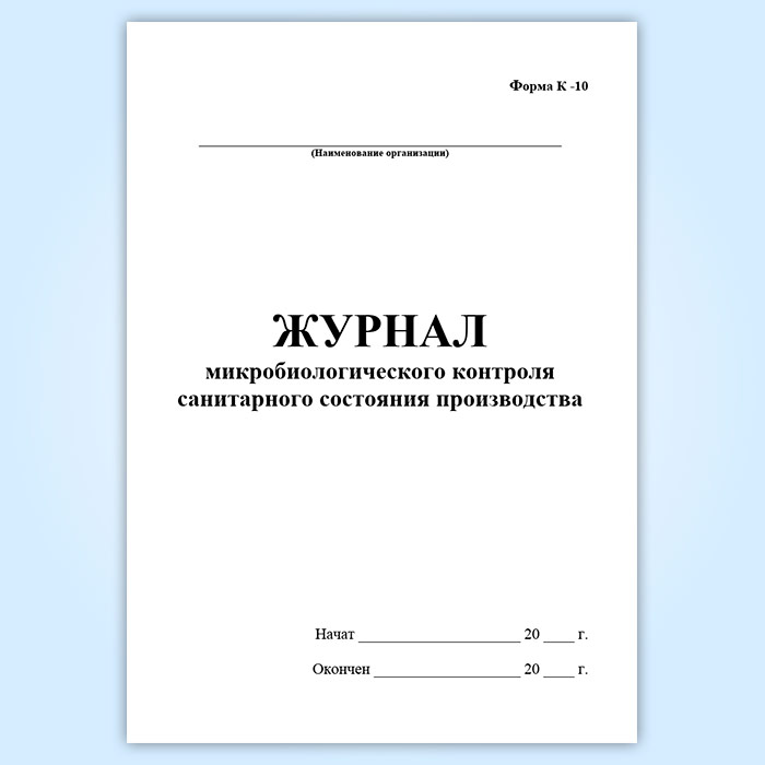 Журнал микробиологического контроля санитарного состояния производства (форма К-10) в Кызыле купить