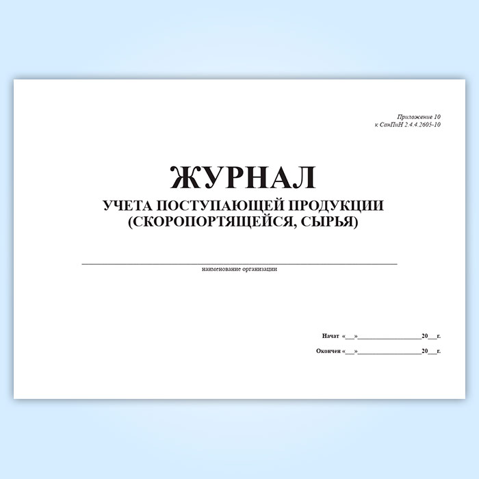 Журнал учета поступающей продукции (скоропортящейся, сырья) в Кызыле купить