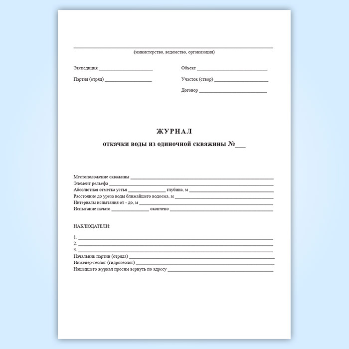 Журнал откачки воды из одиночной скважины (форма УГ-36) в Кызыле купить