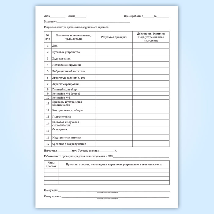 Журнал приема-сдачи смены дробильно-погрузочного агрегата в Кызыле купить